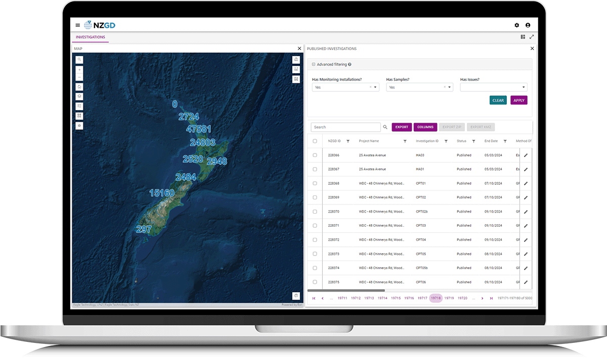 The NZGD is a centralised platform for engineers to share and access geotechnical data. Originating from the Canterbury earthquakes, the NZGD has grown to be a nationally important dataset to the geotechnical industry. It is focused on providing more efficient access to geotechnical information, to support building construction and compliance for local and central government. It is also used to support the wider construction industry and the development of geotechnical research.